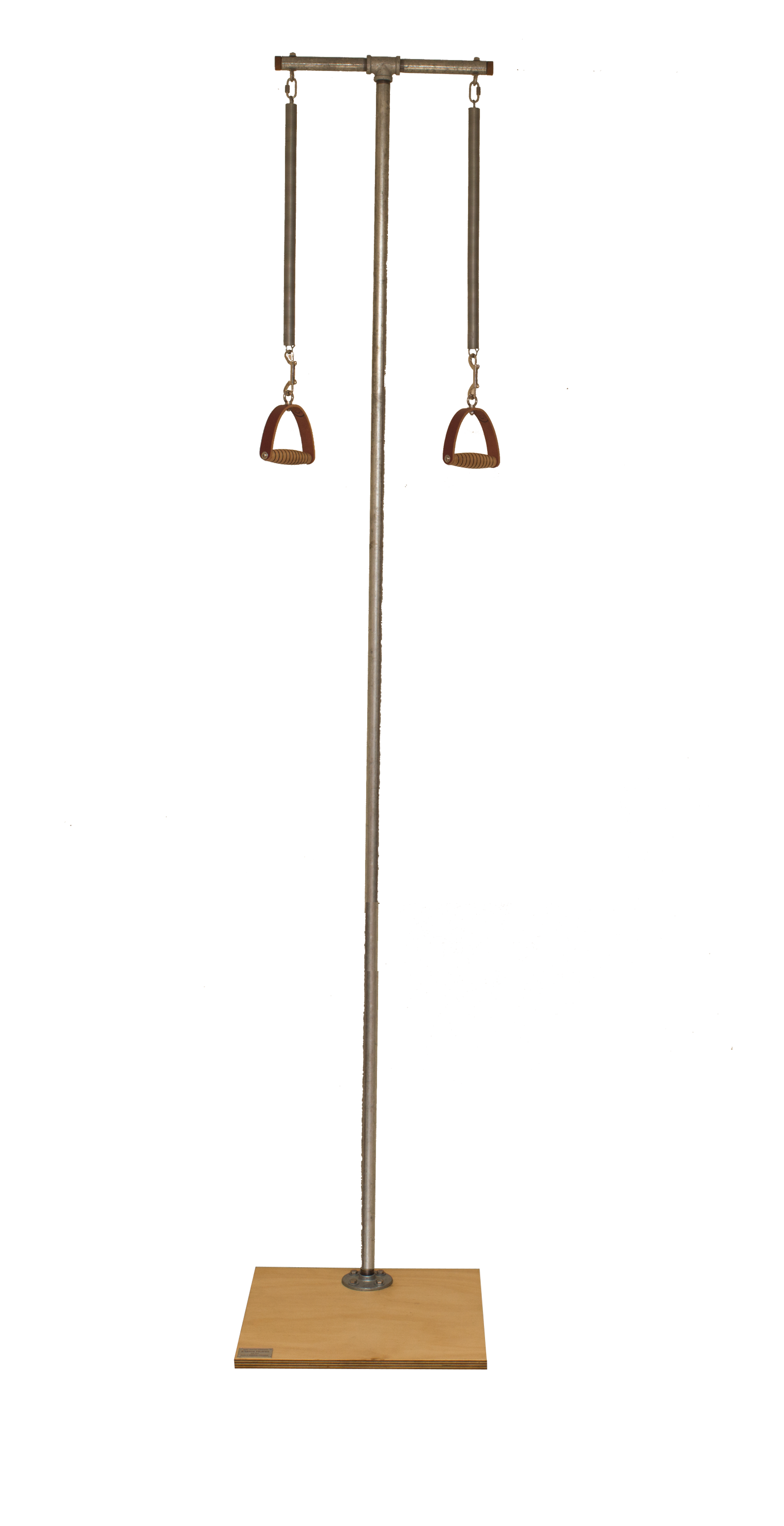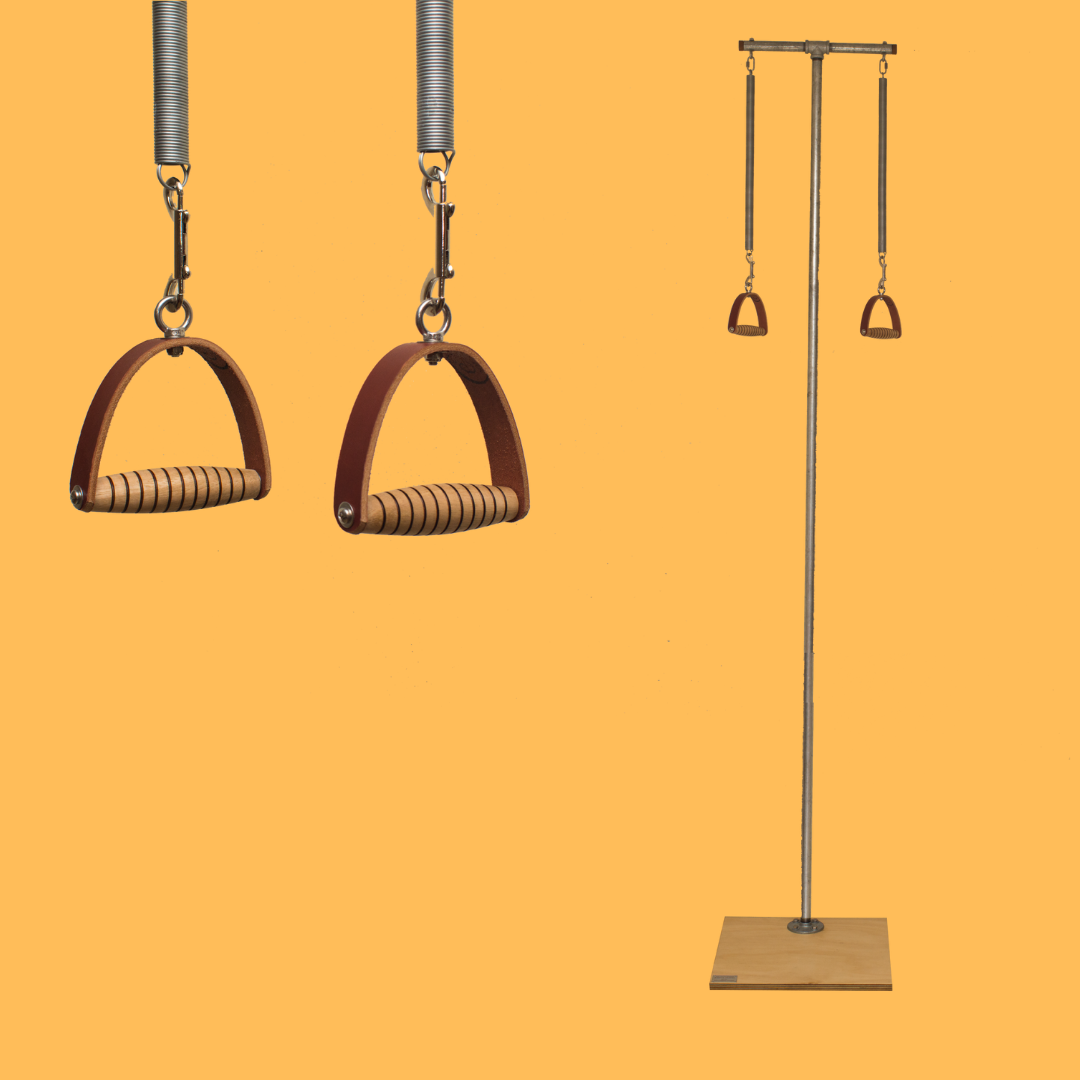 The posture pole is constructed from galvanised steel and high quality Australian plywood, based on the classic pedi pole design of Joseph Pilates,